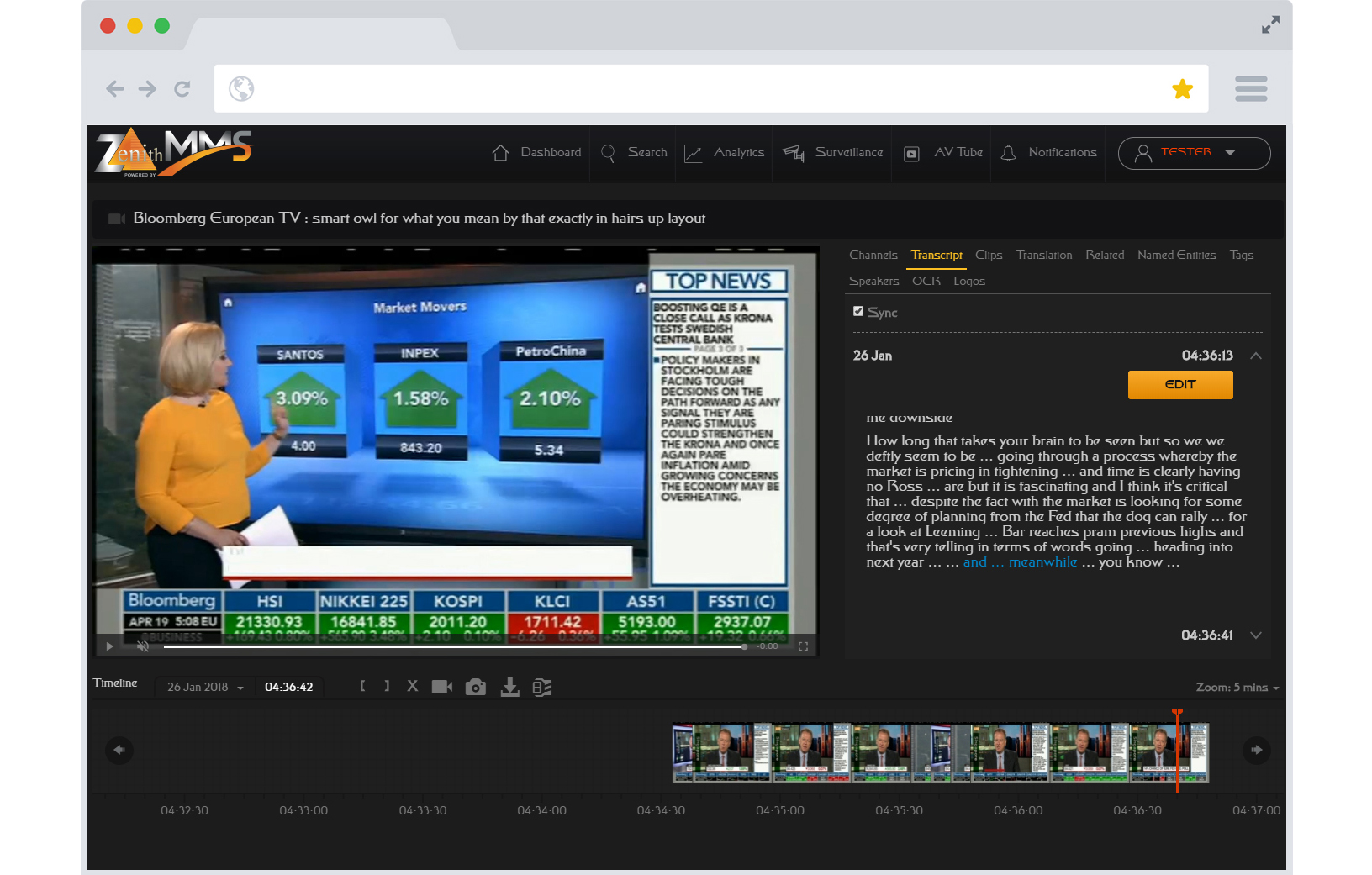 Traditional broadcast media (Television and Radio), and the exponentially growing number of online video and audio sources, provide customers with access to a real-time information source for emerging situations and public and customer sentiment and the ability to develop a searchable archive of video and audio over any time period. To deliver actionable intelligence from these sources Zenith provides fully automated, multi-lingual broadcast media monitoring and archiving across hundreds of sources in real-time with real-time transcription and translation of all available audio and on-screen text sources in over 30 languages including Arabic. The solution provides an easy to use interface for the different operator tasks to support.