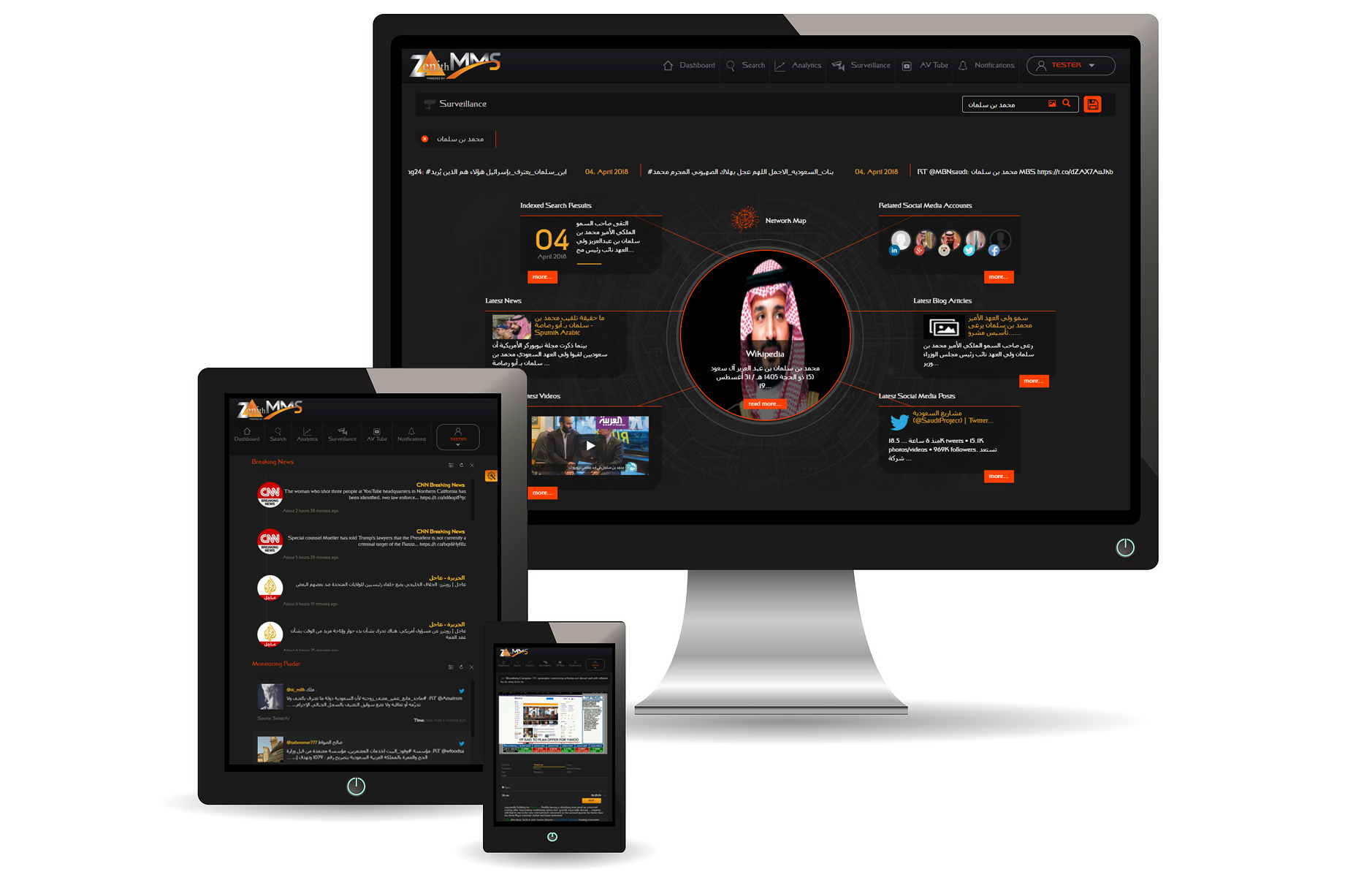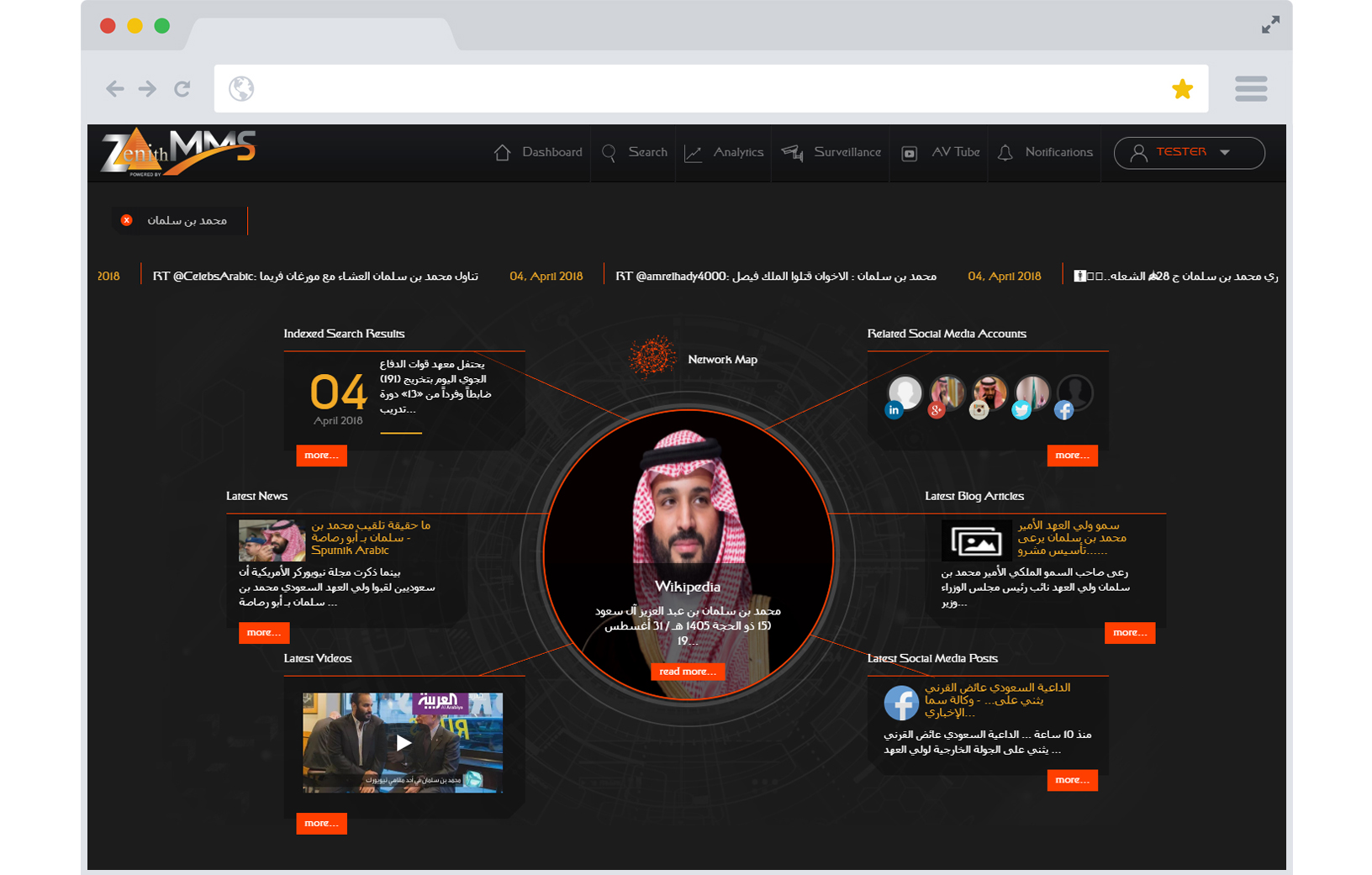 With our expertise in Big Data and Security Solutions and our understanding of the Middle East regional requirements for law enforcement, combined with our expert skills in working with content from various languages including Arabic and our ability to deliver English and Arabic language interfaces, Zenith is uniquely positioned to provide you with the right tools to conduct your investigations.